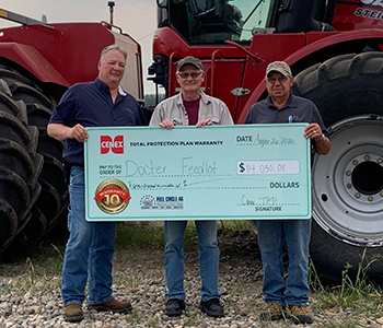 Thankfully, Docter Feedlot has been enrolling their eligible equipment, including their 550 Quadtrac, in the Cenex Total Protection Plan® for as many years as they can remember. “You can’t buy many replacement parts for the tractor compared to the cost of the warranty itself.” Mick Doctor said. When they got the repair bill, the Cenex Total Protection Plan® was there with a big check for $14,030.00 to cover the eligible repairs, per the terms of the agreement.